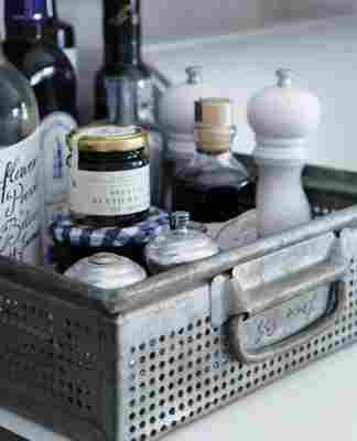 Trays are one of my favorite decorating tricks. A bunch of stuff sitting out on a table? Haphazard, a disaster. A bunch of stuff sitting out on a table on a tray ? Now you have a clever and carefully collected little vignette. In this photo from Style at Home , a vintage tray is a perfect organizer for countertop necessities, so they’re within easy reach but don’t read as clutter.