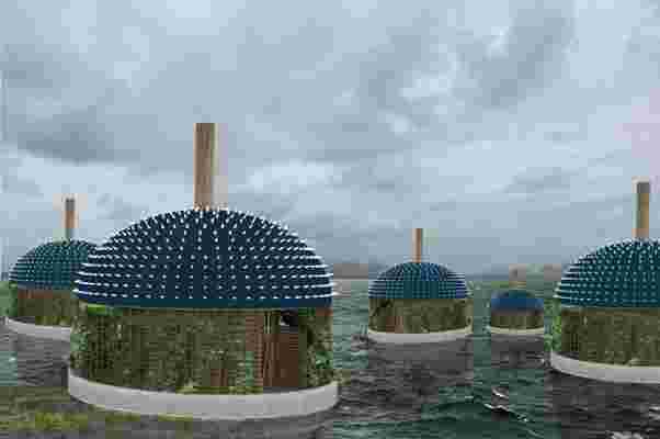 Puffer Village is a system of smart homes with built-in architectural technology that allows them to adapt to changing water levels and stormy weather conditions.